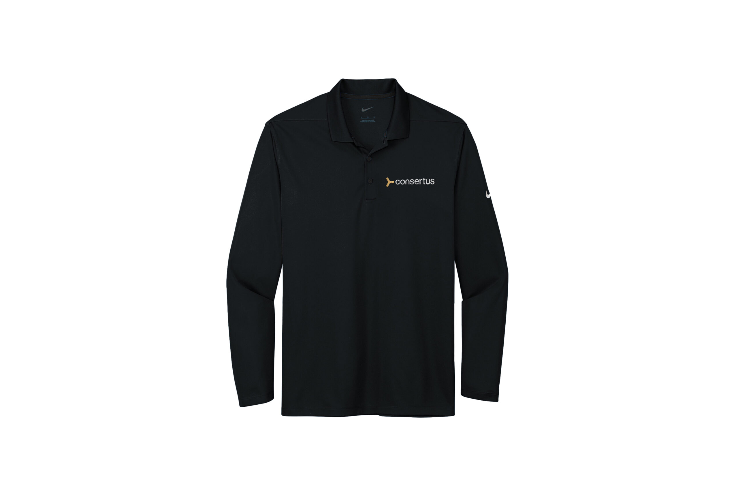 Long sleeves elevate this polo to another level of sophistication while Dri-FIT moisture management technology adds unparalleled performance. Stretch fabric for hassle-free swinging motion. Flat knit collar and cuffs. Heat transfer label for tag-free comfort. Three-button placket. Â The contrast Swoosh design trademark is embroidered on the lower left sleeve. Side vents. Made of 5-ounce, 100% polyester Dri-FIT fabric.
