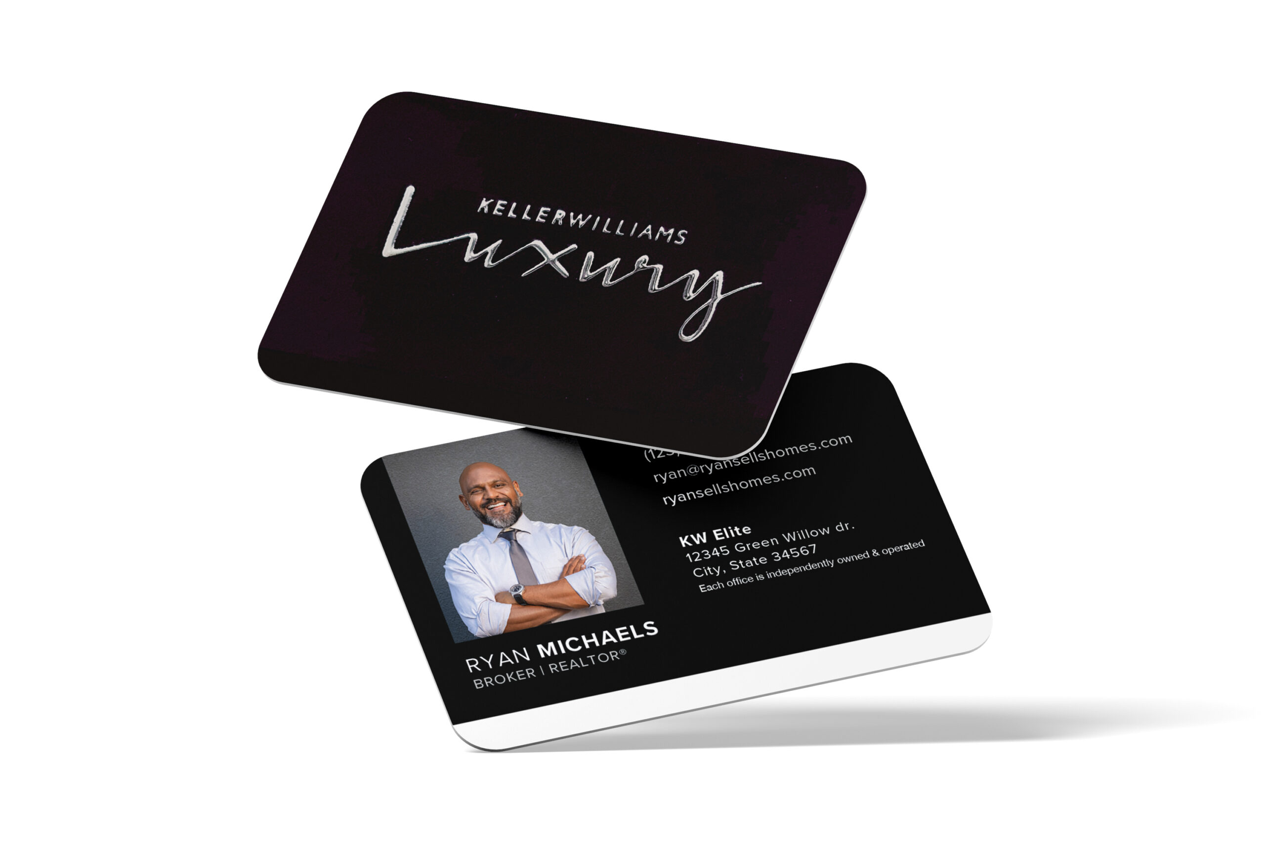 Horizontal All Black with Back Logo Foil Photo KW Luxury Business Card