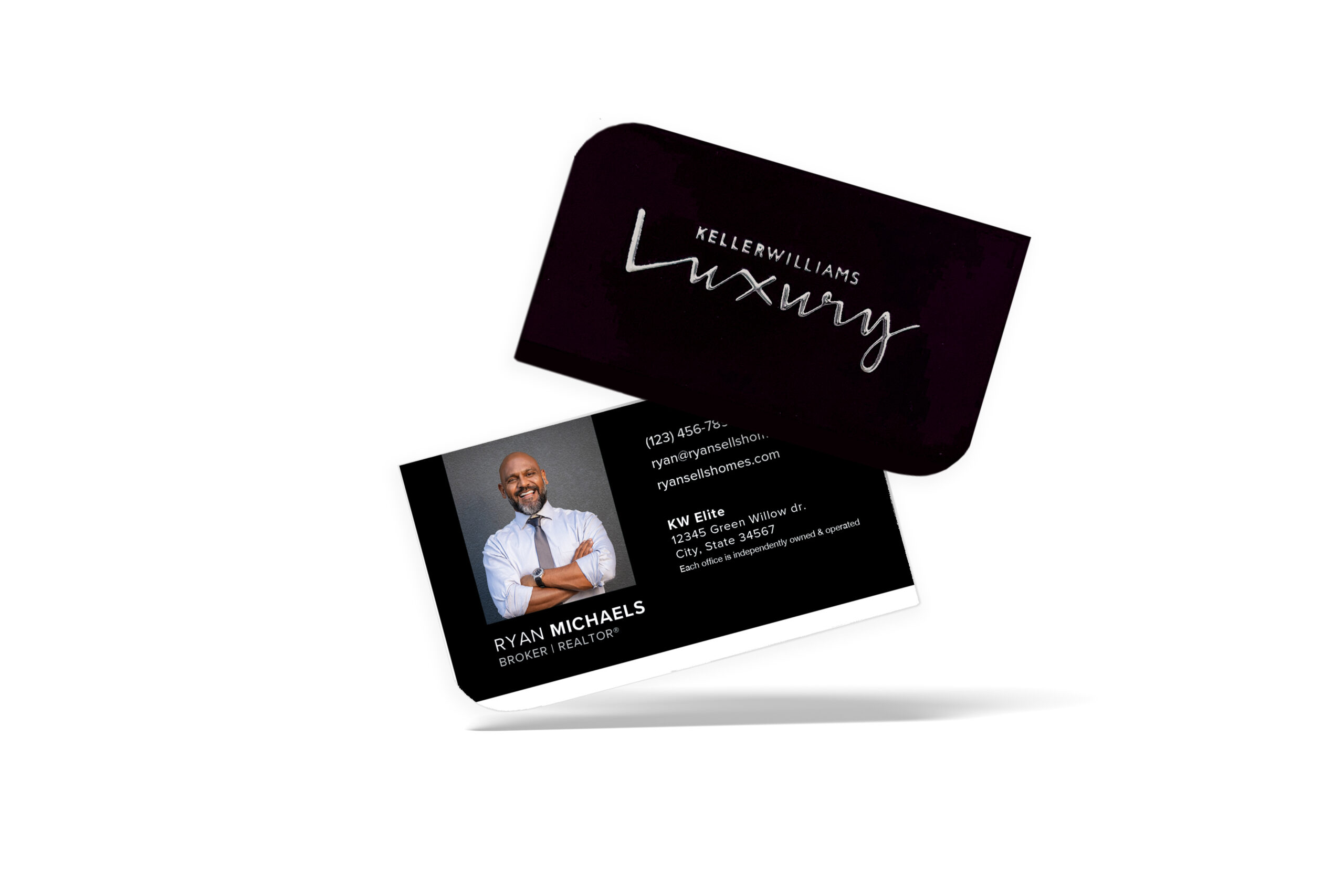 Horizontal All Black with Back Logo Foil Photo KW Luxury Business Card