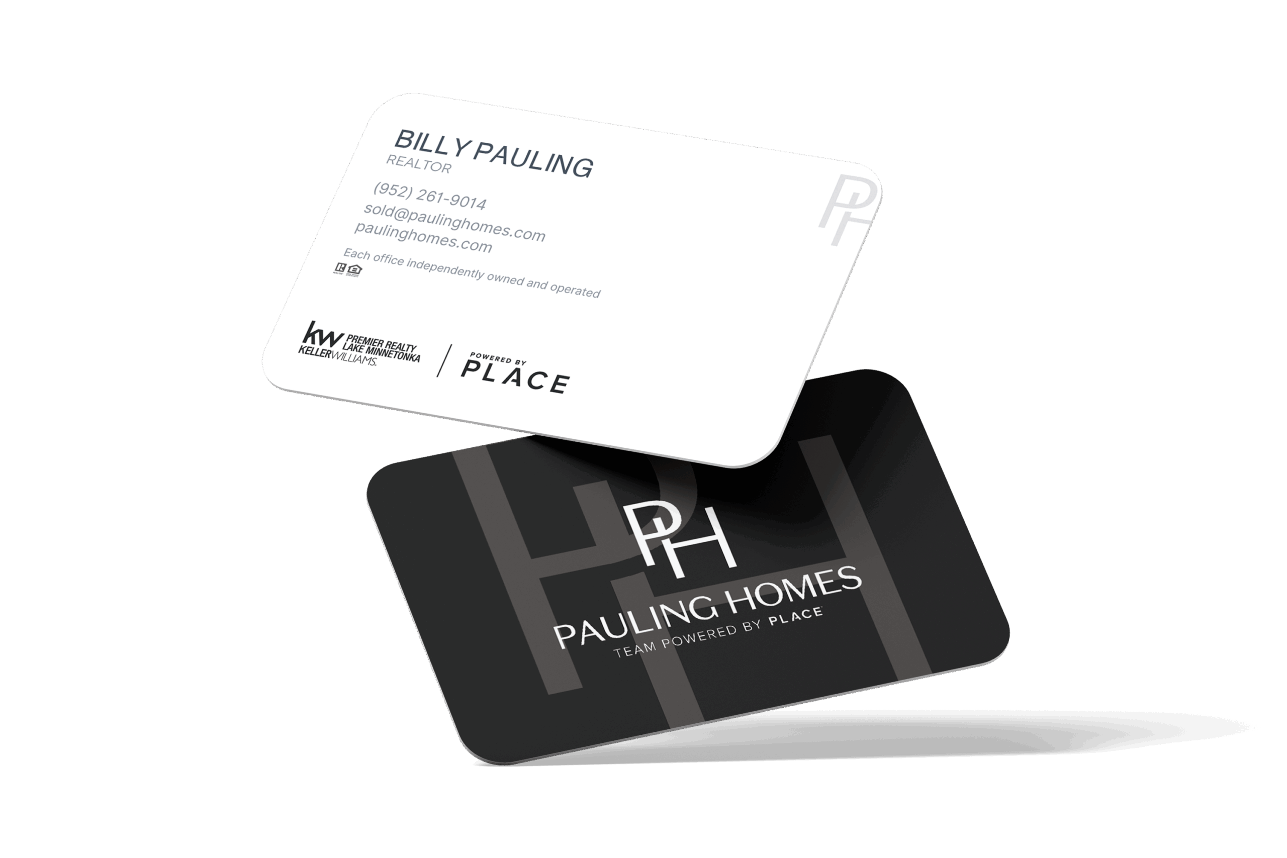 PLACE business cards are printed on high-quality 16-point cardstock and then silk laminated for a luxurious feel.  Or if you prefer you can forego the suede lamination and opt for a matte or glossy finish.  Your cards are produced and shipped out in 2-3 business days and will be delivered via USPS or FedEx within 1-5 business days.