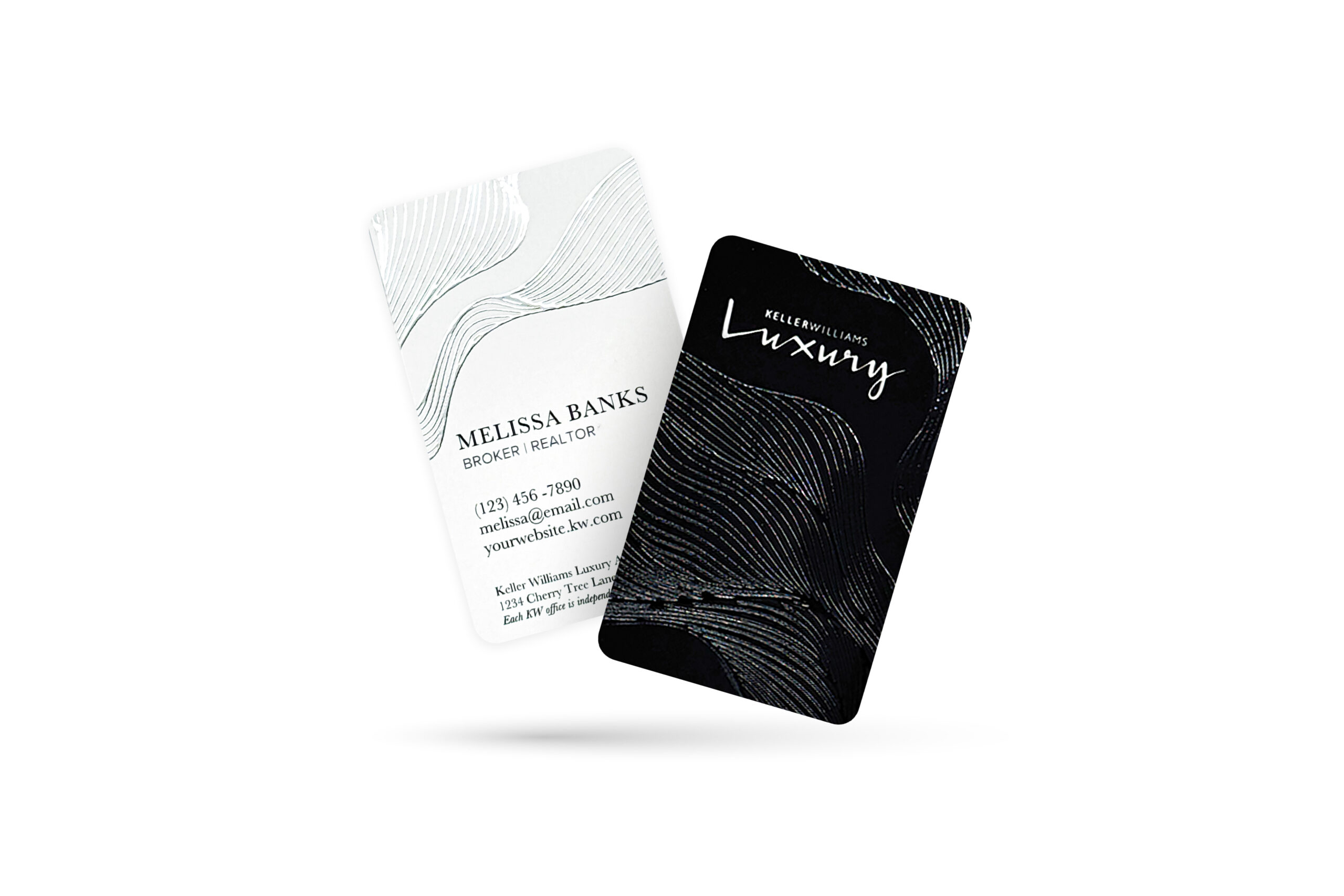 Vertical Black White Wave Spot UV Back Front Foil KW Luxury Business Card
